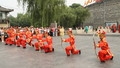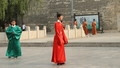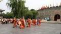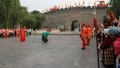 游客们来到曲阜孔庙旅游,每天早晨第一站要体验明故城南门城楼的晨钟暮鼓仪式、万仞宫墙前的曲阜明故城开城迎宾仪式,是值得观看的。晨起后很早就来到城门南,接近八点钟,游人已将表演场地为了个水泄不通,我有幸占据了东南方向一个角落,端着相机静候着节目的开始、、、、、、。 据了解,每天早晨8时,晨钟敲响,明故城城门将被打开,下午6时,暮鼓响起,城门将被关上。据曲阜市文物局工作人员介绍,以前晨钟暮鼓主要起计时作用,告知人们时辰,这一传统一直延续到清朝,“现在恢复晨钟暮鼓,主要是让更多的游客能对当时的文化有一种直观的体验。” 据了解“晨钟暮鼓”是古时人们重要的起居信号。钟鸣,城门开启,万户活动;鼓响,城门关闭,宵禁人息。游客不仅可以目睹仪式的真实过程,还可以像“抢头香”样争做上楼敲钟的幸运儿,着古装礼服,代礼官撞钟24响,宣告曲阜明故城开城迎宾。新的系列展演最大看点是以恢复曲阜传统礼制活动为核心,充分展示儒家礼仪文化的厚重,并坚持礼制化、仪式化和常态化,让游客亲近孔子,缅怀先师,综合展现“千年礼乐归东鲁,万古衣冠拜素王”的历史盛况。每日展演结束后,游客还可以到孔庙西侧诗礼堂听孔子礼仪课,礼仪专家将用声情并茂的方式为游客提供身临其境的文化礼仪体验。 1