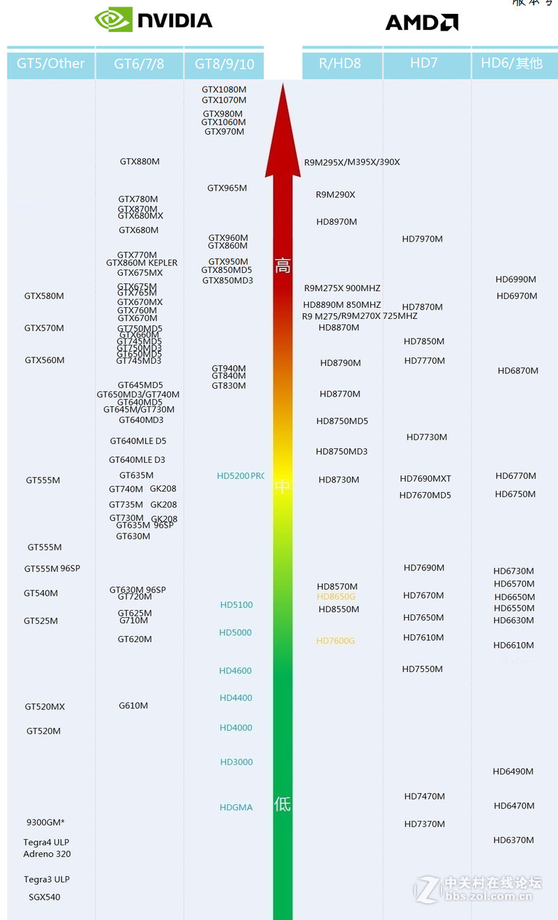 台式机及笔记本显卡天梯图