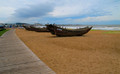 休渔季节,渔船上了沙滩,成了游客的观赏品和拍照留念的背景。